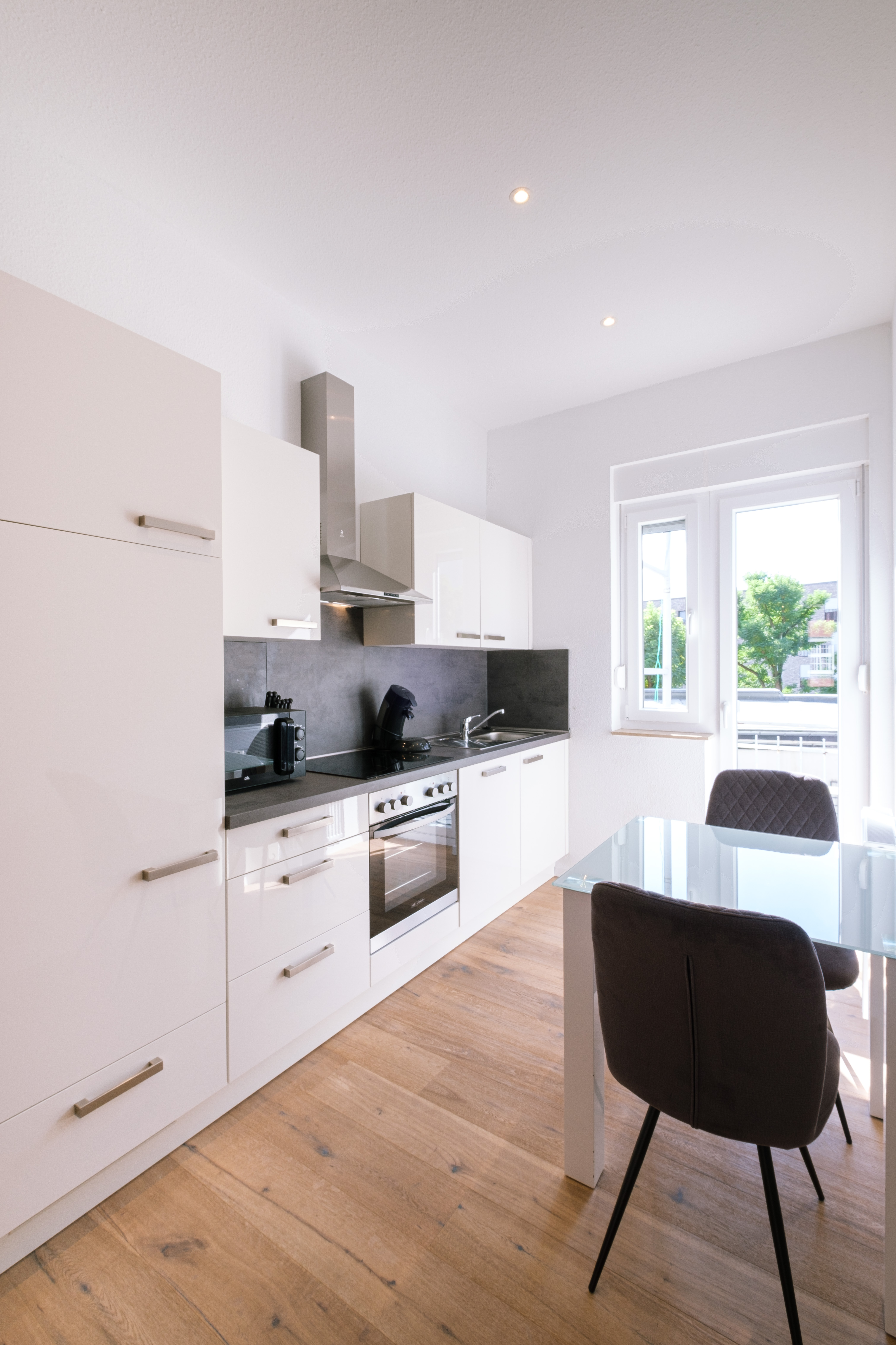 Die Brunnenstraße liegt zentral im Stadtbezirk Unterbilk ganz in der Nähe der Karolingerhöfer direkt an der Düssel. Unterbilk grenzt direkt an die City. Die Straße bietet eine Vielzahl von Einkaufsmöglichkeiten. Die Bilker Arcarden sind fußläufig zu erreichen. Dort besteht auch die Gelegenheit, einen Parkplatz zu mieten. Straßenbahnen und Busse halten vor der Haustür.