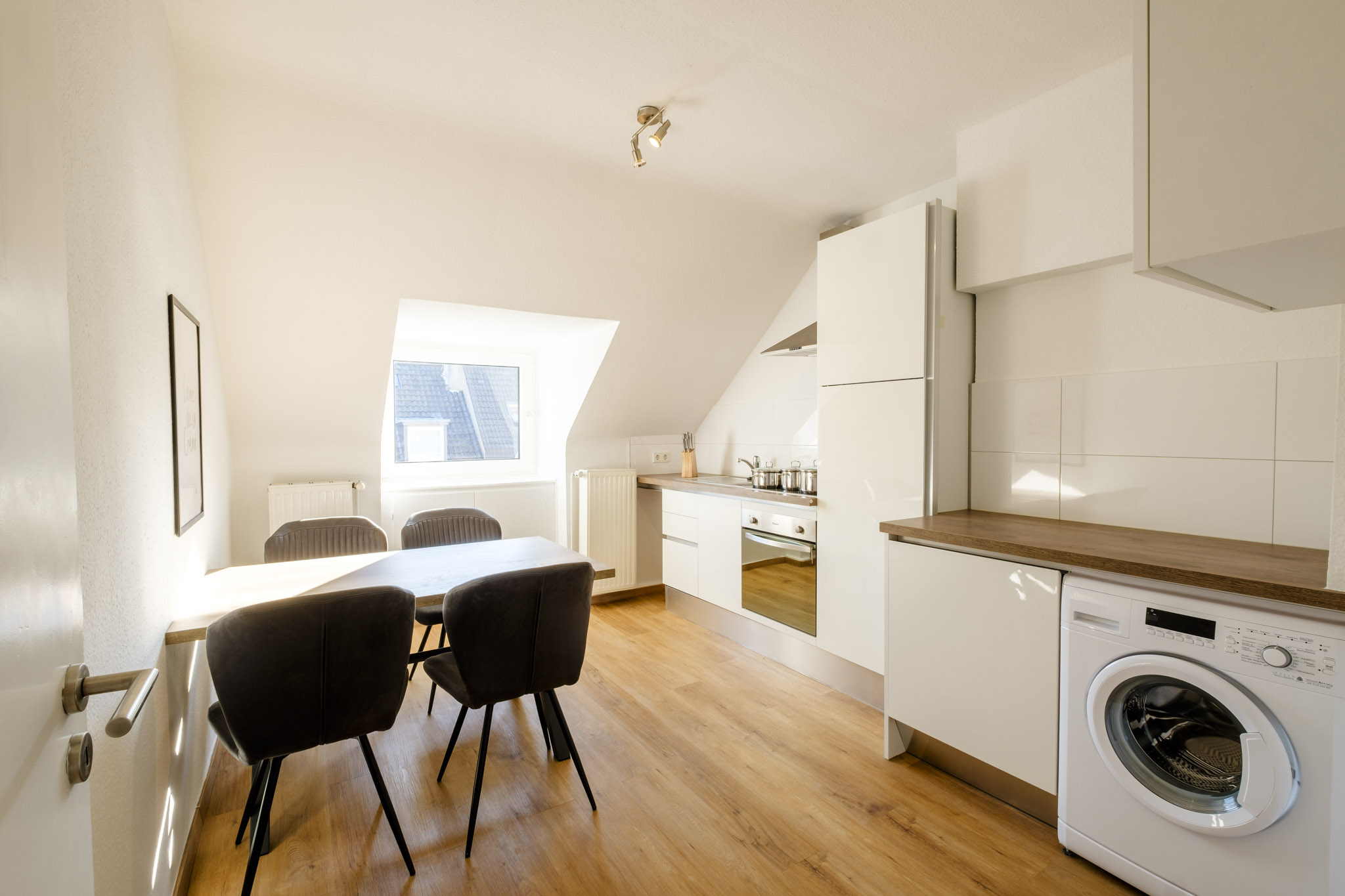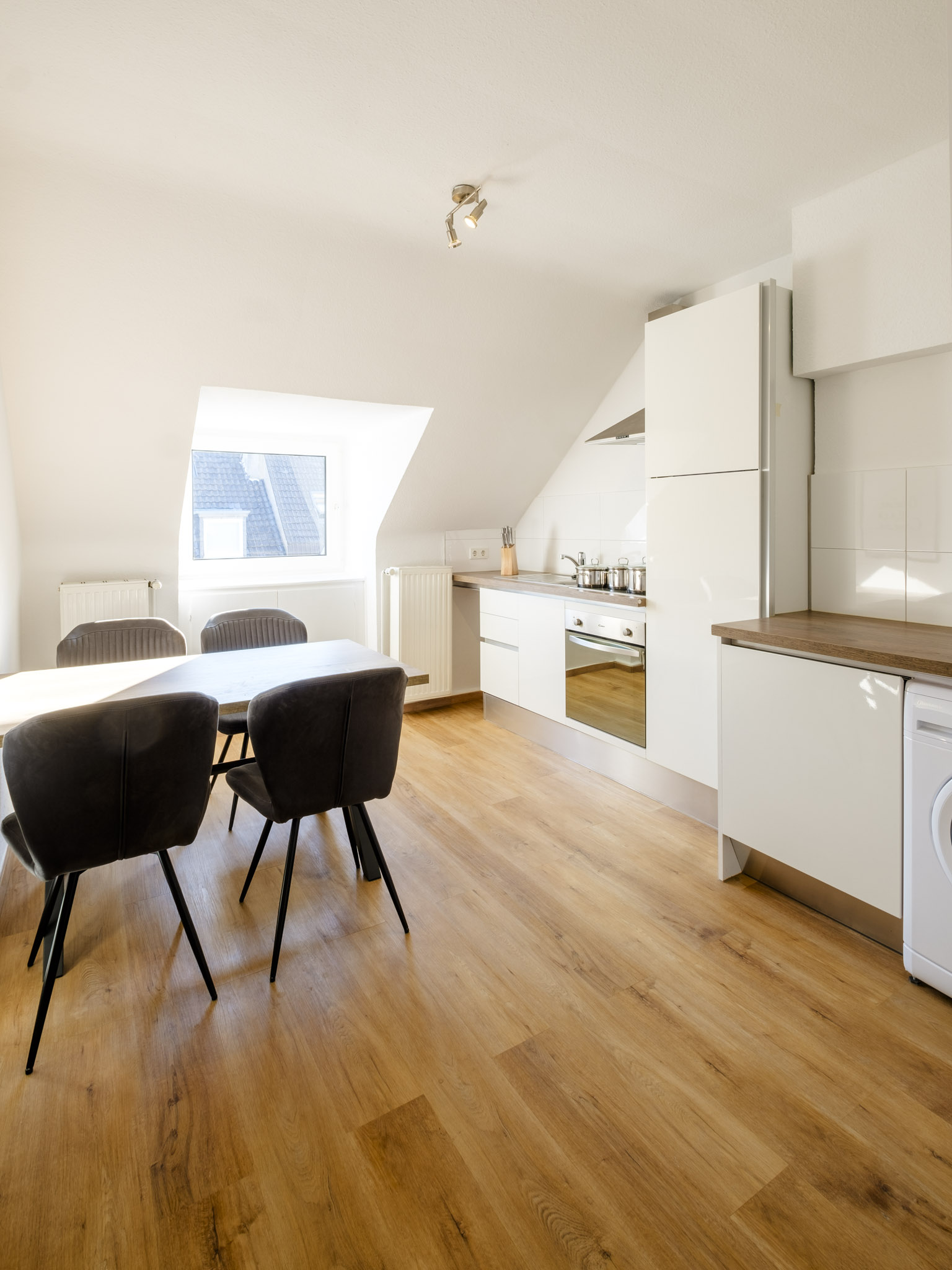 Die Derendorferstraße liegt central im Stadtbezirk Pempefort. Pempelfort grenzt direkt an die City. Die Straße bietet eine Vielzahl von Einkaufsmöglichkeiten, Restaurants und Bars. Nur wenige Schritte entfernt liegen die Moltkestraße und die Tußmannstraßen, die mit ihren vielen Restaurants und Bars zu den aktuellen Hotspots der Stadt zählen. Straßenbahnen und Busse halten in unmittelbarer Nähe.